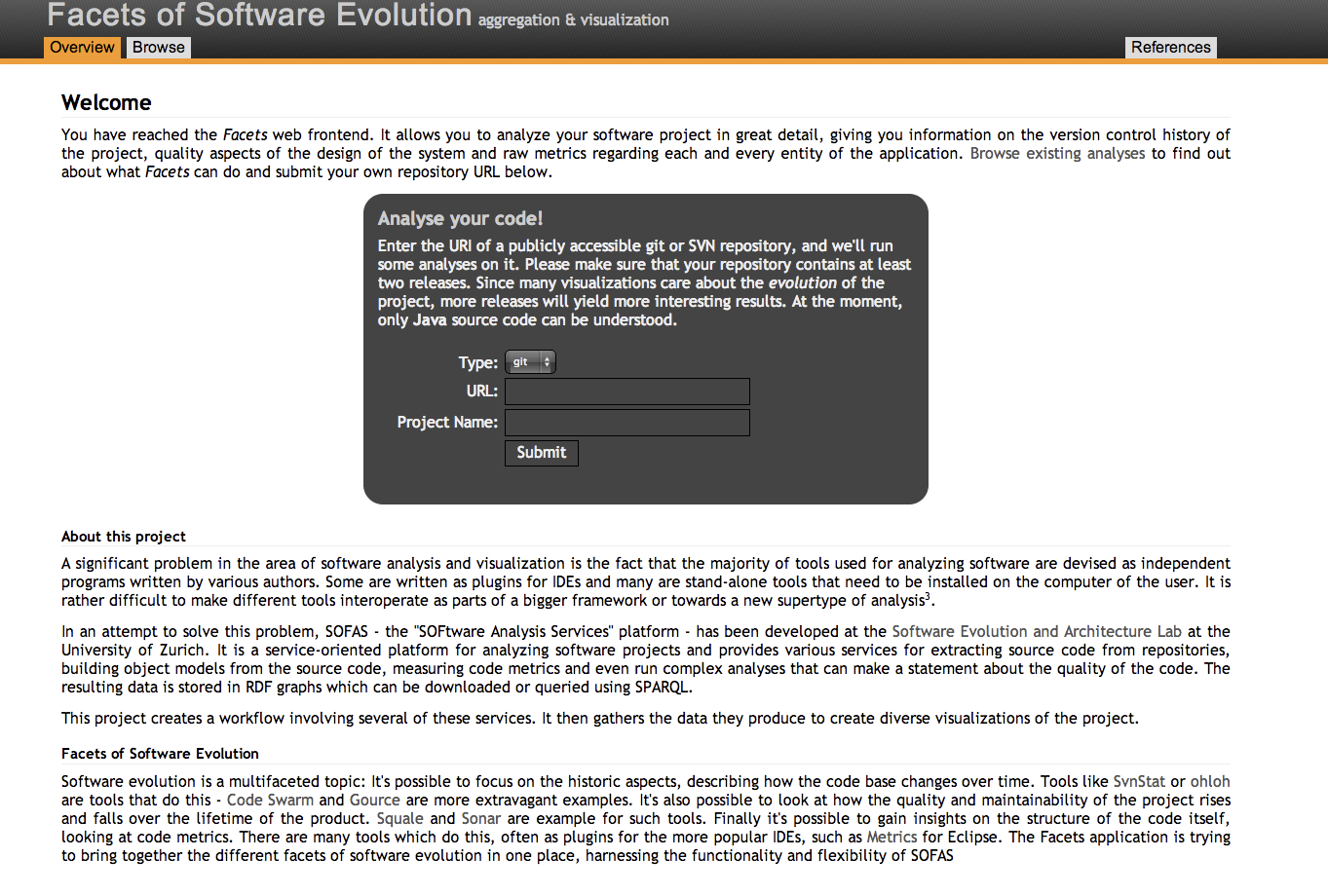The Facets of Software Evolution web application can only be accessed from within the University of Zurich intranet here.