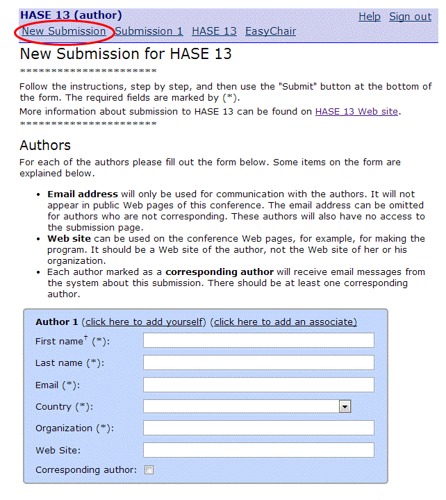 Select New Submission and enter your personal details.